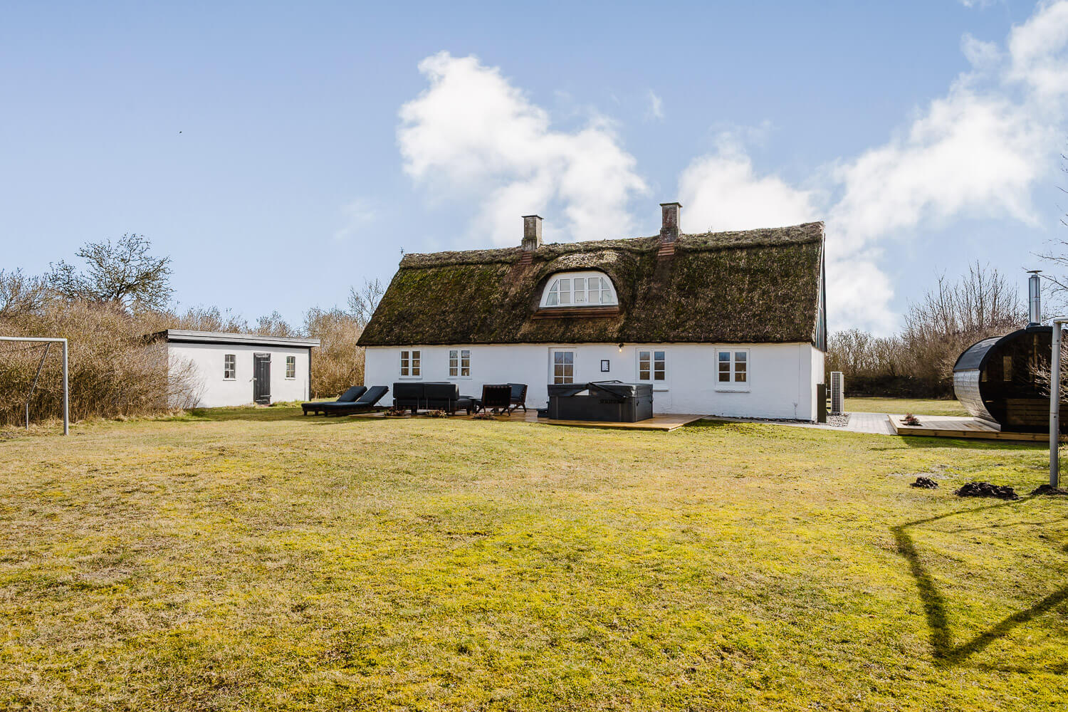 2 x havebord, 8 x stole, 1 x parasol, loungemiljø med sofaer og bord, Udendørs Spa og 6 MTB-cykler. Derudover forefindes der 2 stk. SUP-boards. Redningsveste kan lånes i receptionen, eller ved stranden i sommerperioden, hvis de ikke forefindes i den rigtig størrelse i feriehuset.